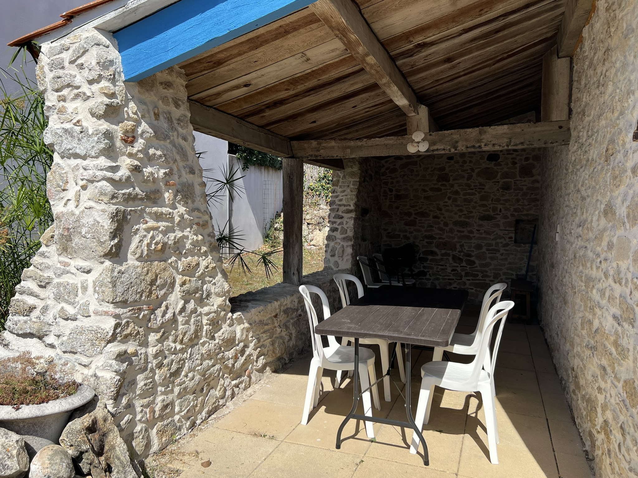 Maison de pays mitoyenne standard de 35 m² environ à 5 mn à pied de la plage et située côté dunes – 4 pers – comprenant, en Rdc : séjour/kitchenette avec coin-repas, une chambre avec un lit de 140, coin nuit avec un lit bébé, salle d’eau avec wc (accès par coin nuit). A l’étage : une chambre non fermée avec deux lits en 90. Lave-linge, micro-ondes, compartiment congélateur, télévision, salon de jardin, barbecue mobile. Terrain clos avec préau sur le côté de la maison, stationnement sur cour. Animal non admis. 1 CLEVACANCES. Possibilité de louer en même temps la maison mitoyenne pour une capacité totale de 9 couchages. Possibilité d'un forfait ménage de 87 €.